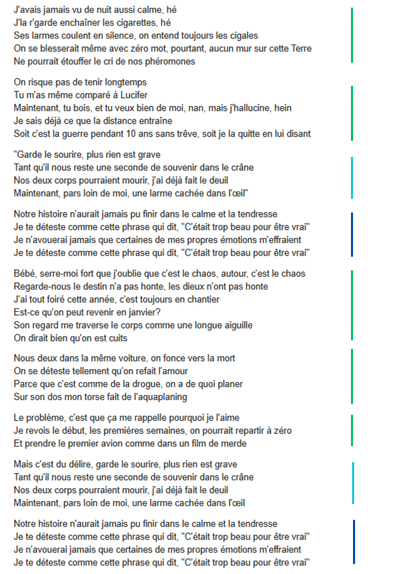 Pour clôturer cet article et pour comparer, je vous mets ci-dessous le texte de Lomepal. Alors, exercice réussi ?